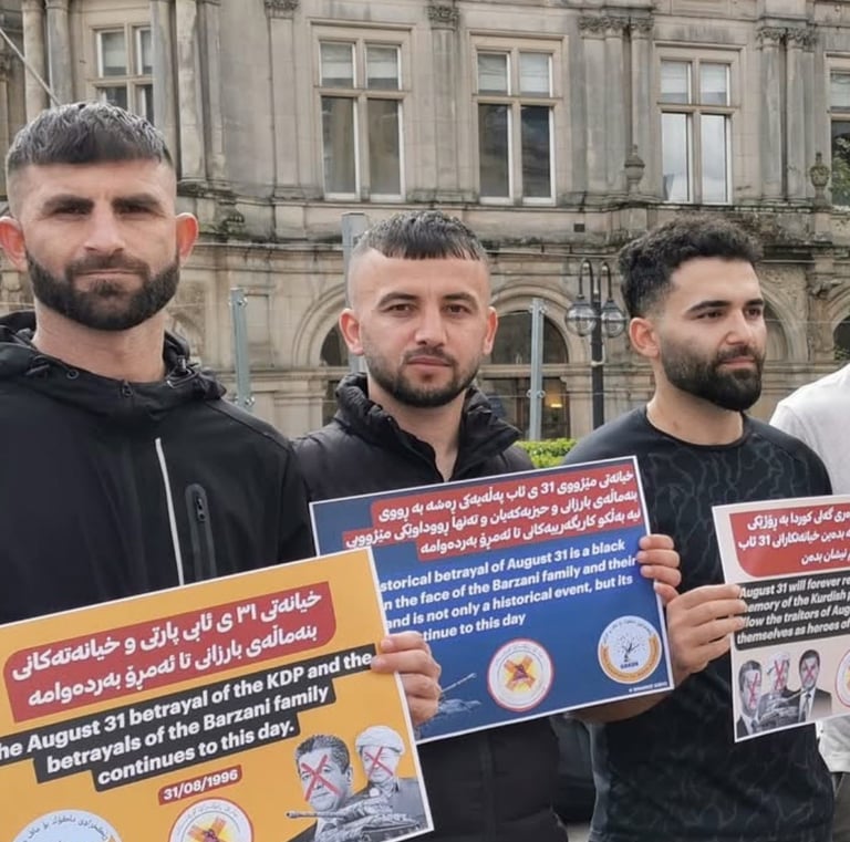 I joined the protest in Newcastle to remember what happened in Sulaymaniyah on 22 August and Erbil on 31 August 1996. Those days were some of the darkest in our history — when Kurds turned on Kurds, and people lost their lives for nothing but greed and power. We stood there to remind the world that betrayal doesn’t get forgotten. That day was heavy, but it felt good to stand with people who still care about truth.